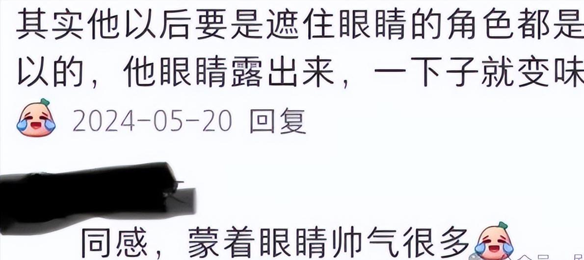 摘下布条后多了几分帅气,剑眉星目,五官立体,眼睛其实很好看。只是辨识度降低了,露出眼睛后演的多部剧,只要不看演员表,几乎就认不出来呀!