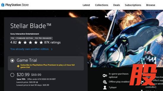 据 Insider Gaming 编辑透露,他在被索尼标记为“动态价格测试用户”后,发现商店的定价逻辑极其诡异。以原价 69.99 美元的《剑星》(Stellar Blade)为例: